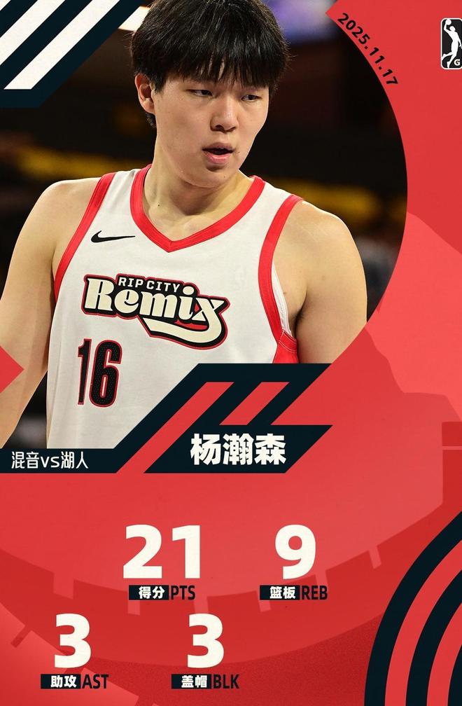 21分9篮板3助攻3盖帽,杨瀚森G联赛得分创新高 混音憾负南湾湖人